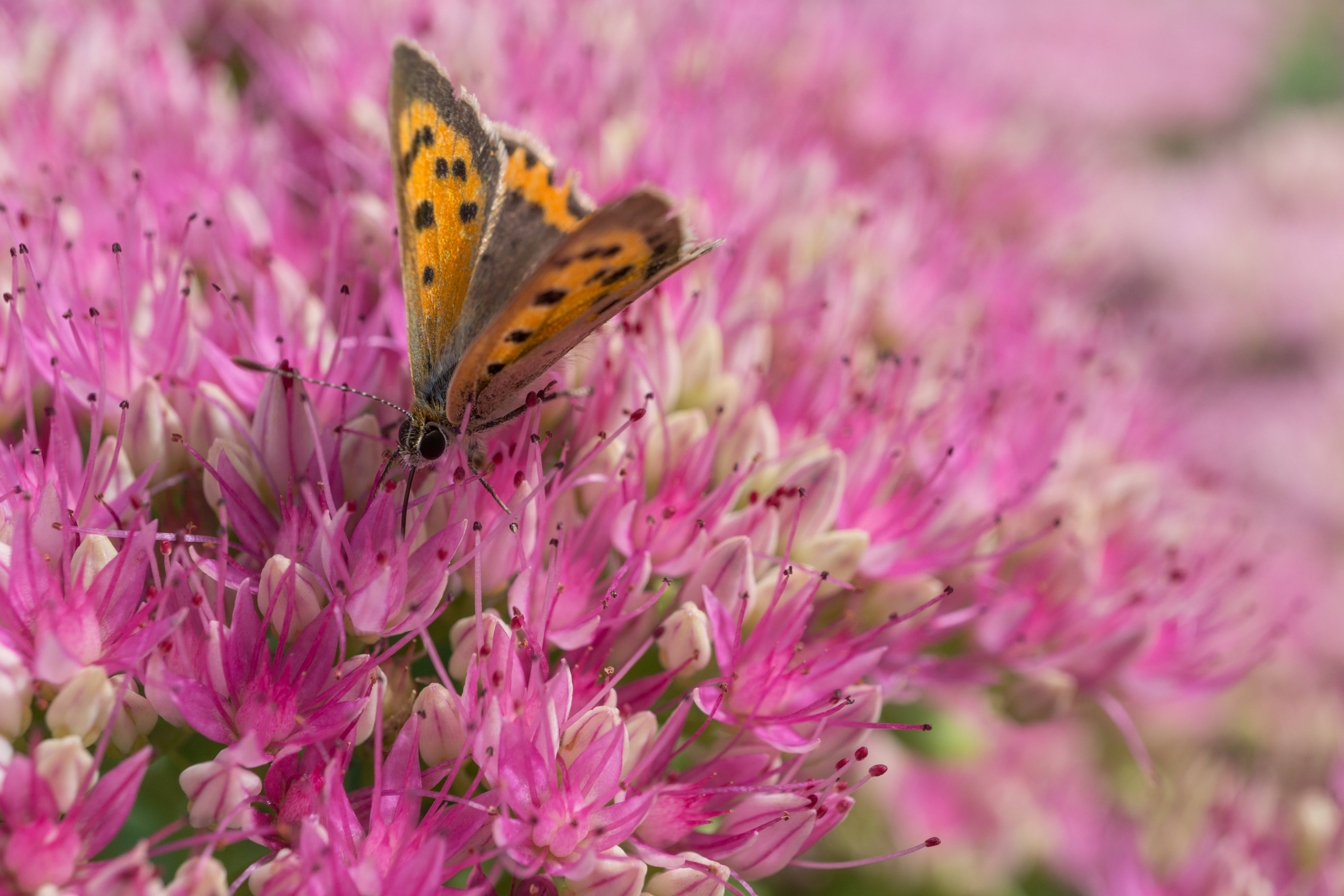 Butterfly On Pink Dahlia Skyfall Flower Wallpaper -