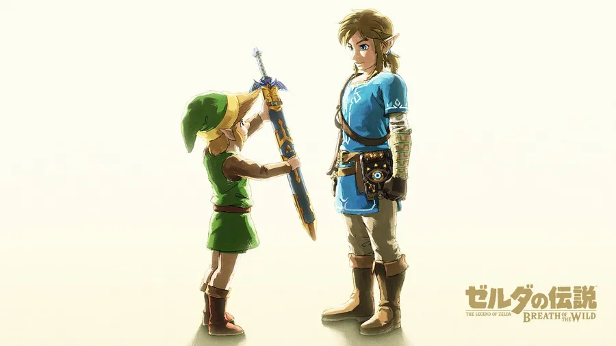 Zelda Botw Little Link Giving Sword To Big Link Wallpaper